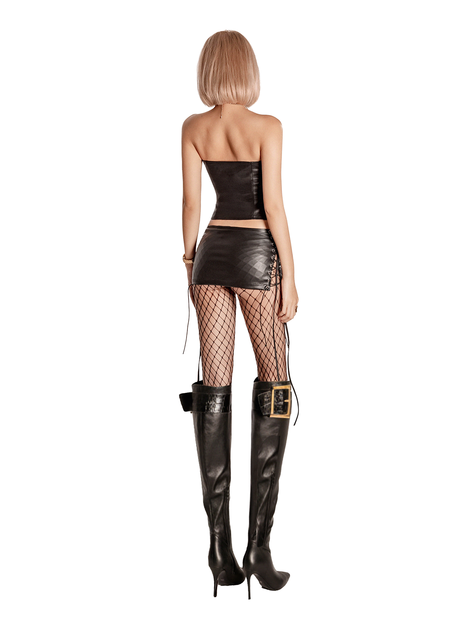Chất liệu da cứng dày dặn, giữ form ôm chuẩn từng đường nét cơ thể.