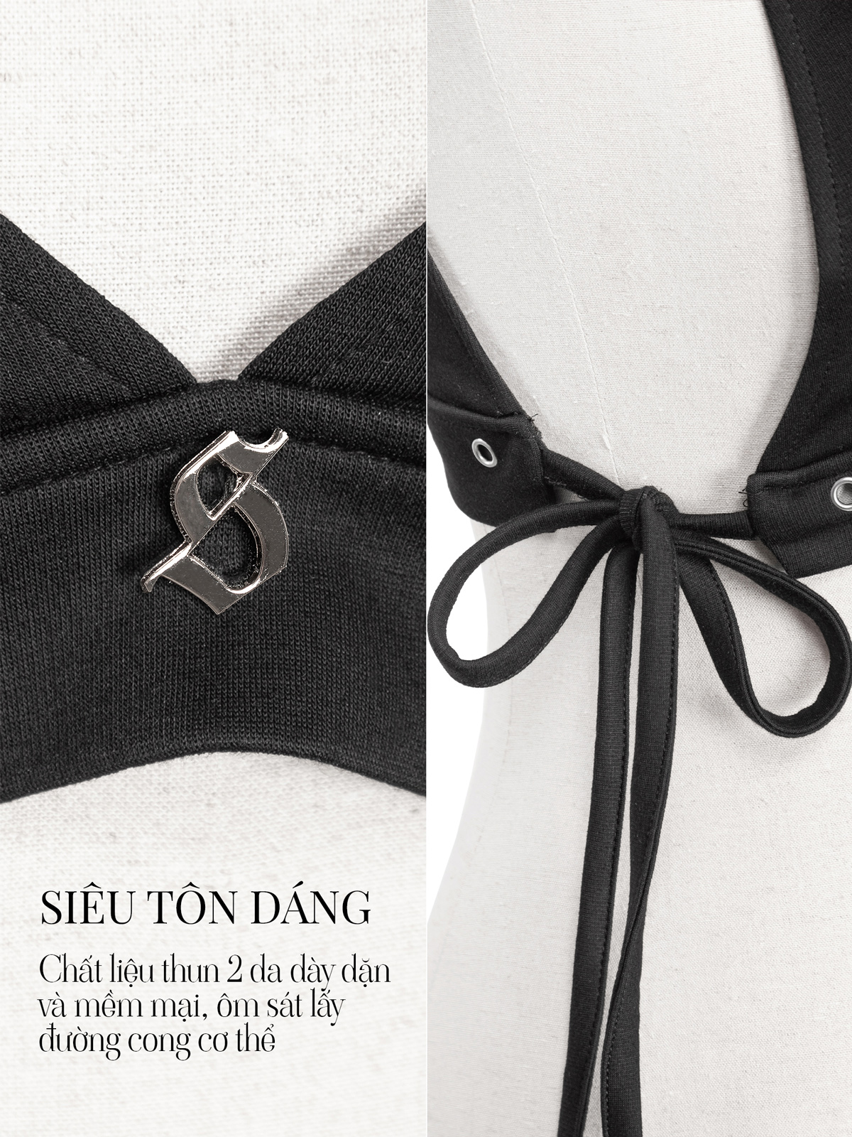 Thun 2 da co giãn cao cấp, ôm vừa vặn và tạo cảm giác thoải mái khi mặc, mảnh tam giác xẻ ngực sâu, tôn trọn vòng một và đường cong cơ thể.