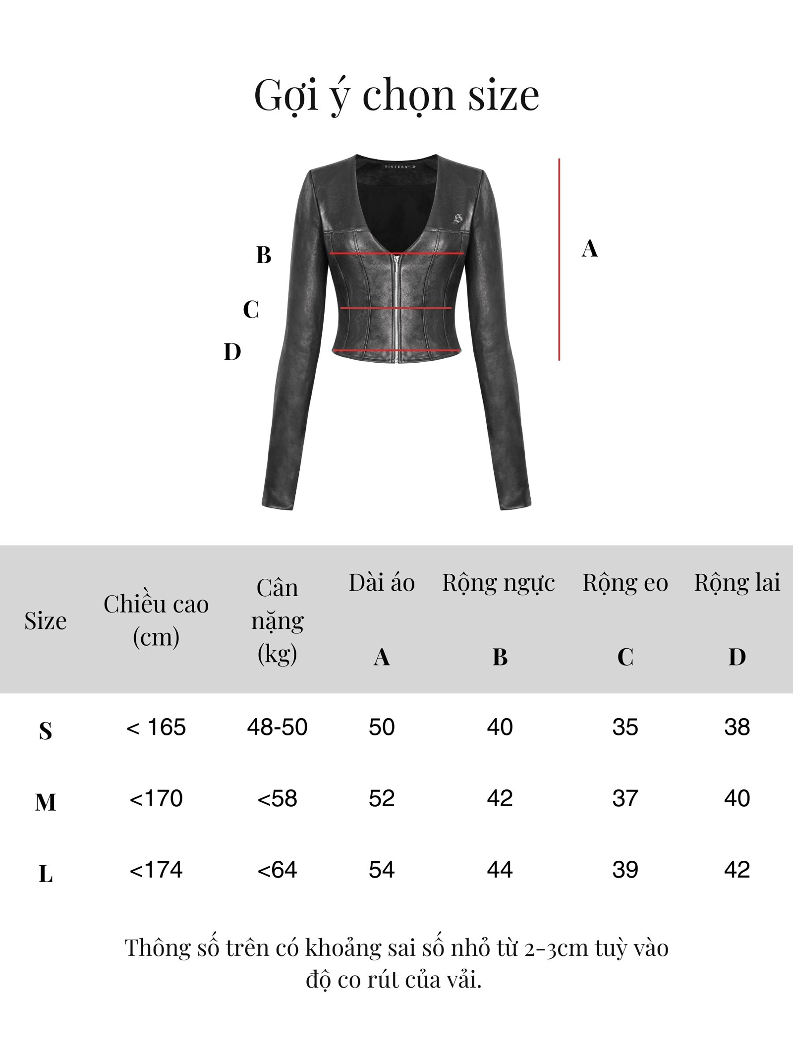 | Size | Ngang ngực | Ngang eo | Ngang lai | Dài áo |
