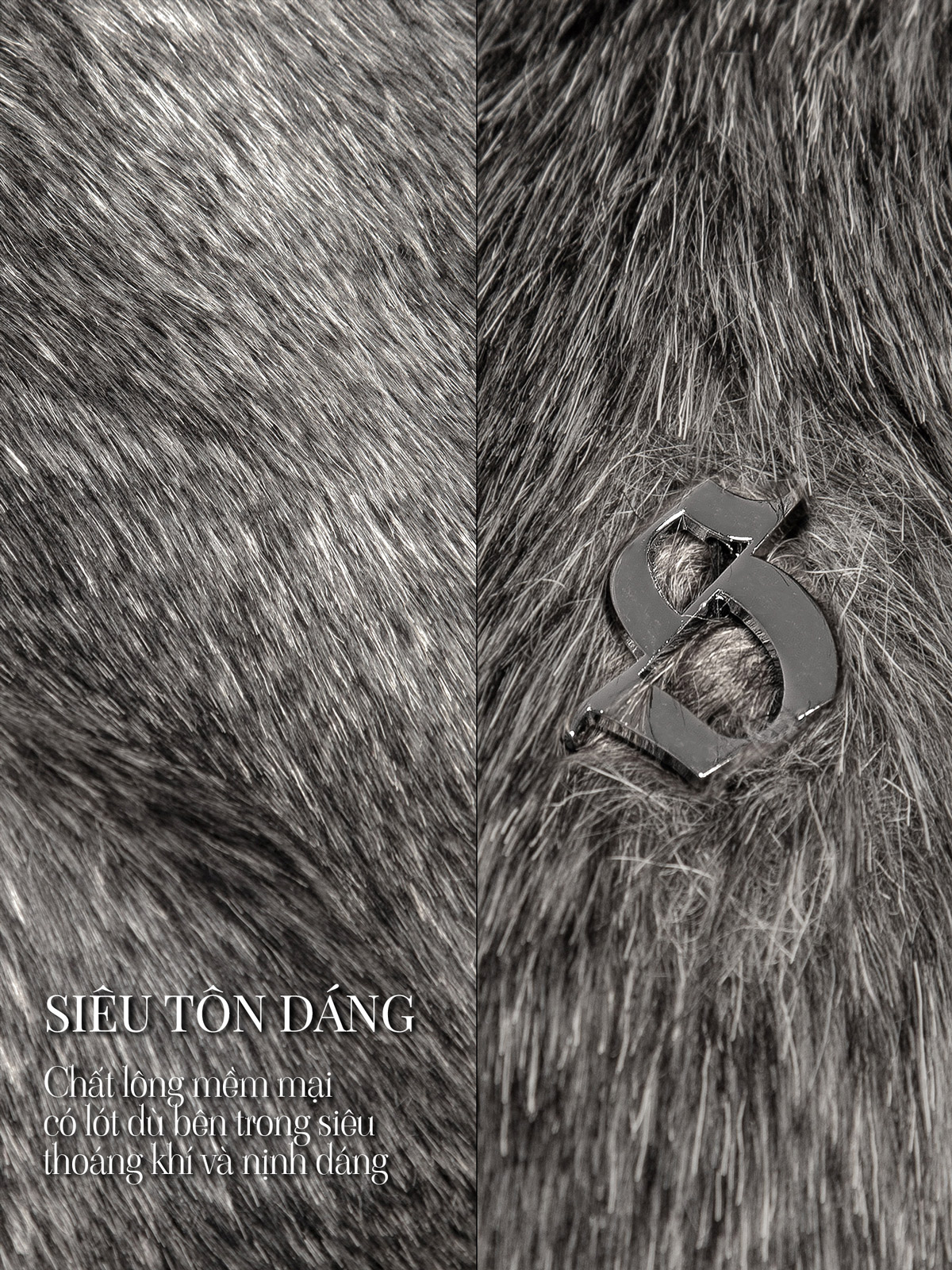 Áo khoác lông dài tay Peggy được sản xuất tại Việt Nam, tôn vinh vẻ đẹp của người phụ nữ.