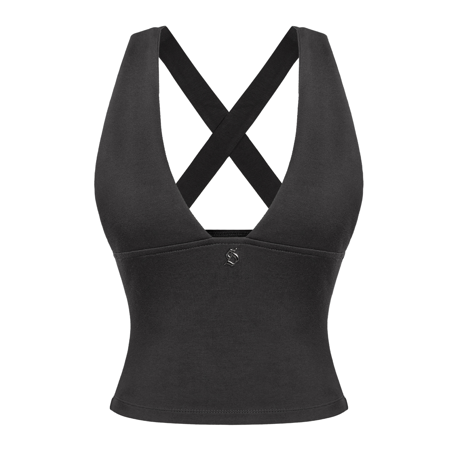 Áo croptop đan chéo lưng Franny được sản xuất tại Việt Nam, tôn vinh vẻ đẹp của người phụ nữ.