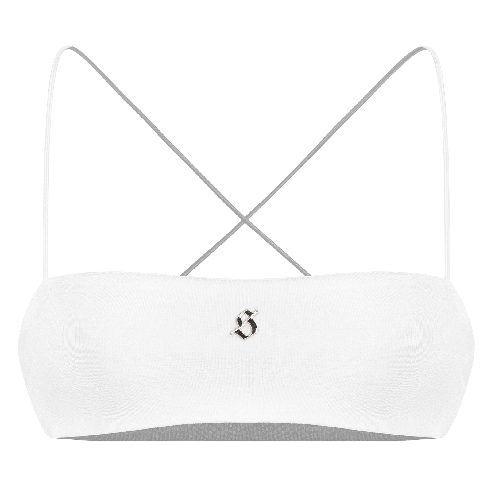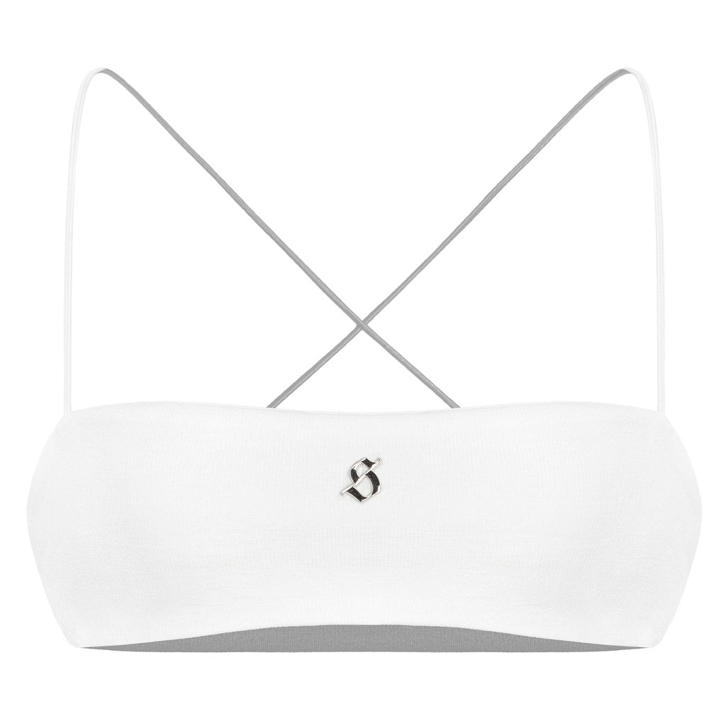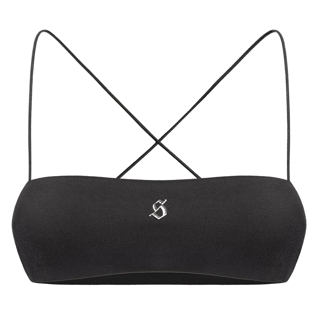 Áo ống bra gây ấn tượng với logo inox sáng bóng trở thành “tuyên ngôn” quyền lực, làm bật lên tinh thần sang chảnh và cá tính của SISTERS.