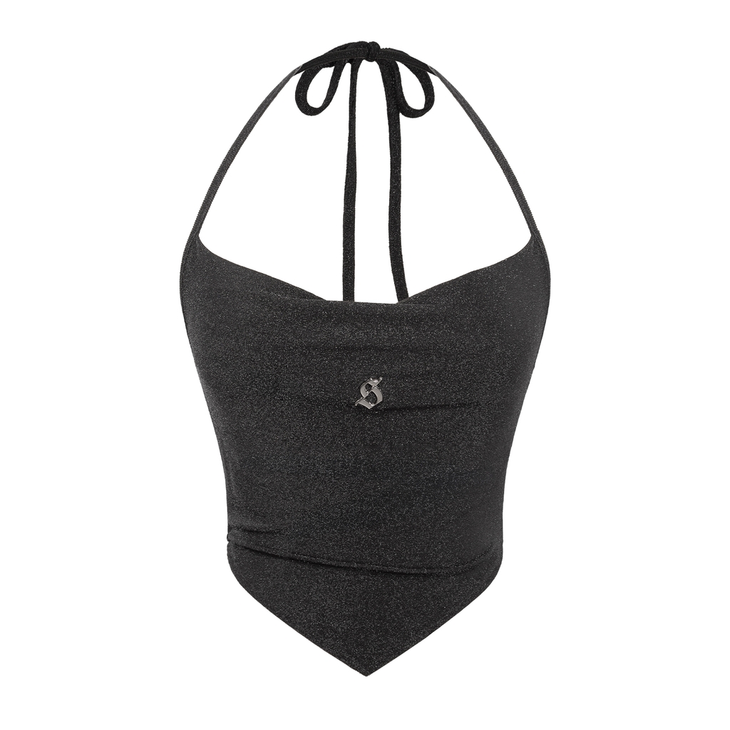 Áo yếm có thiết kế cổ đổ quyến rũ, cột dây cổ điều chỉnh dễ dàng, hở lưng khoe trọn bờ vai quyến rũ. Logo inox khắc sắc nét ở vị trí trung tâm, đường may gọn gàng giữ phom.
