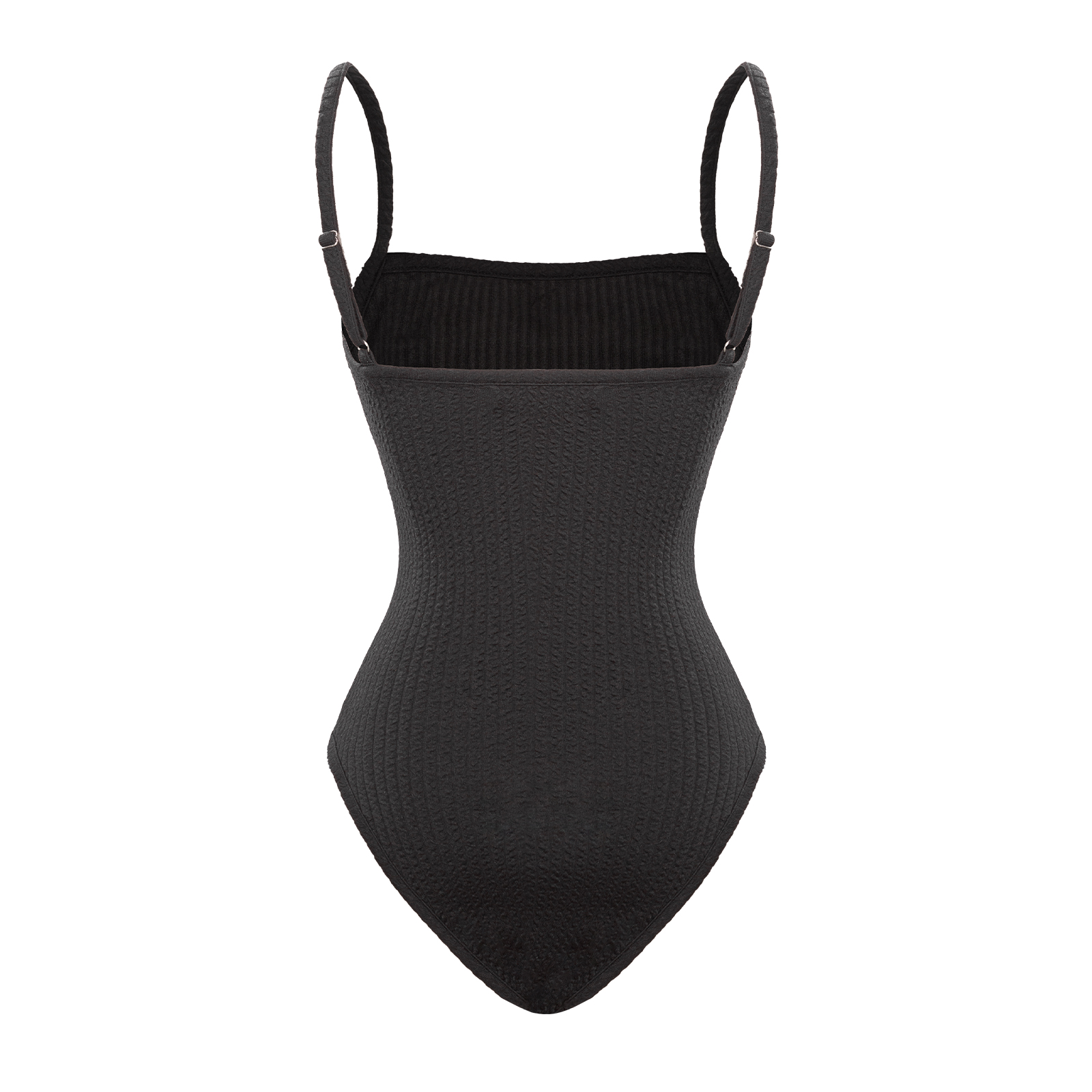 Swimsuit tôn lên đường cong quyến rũ với thiết kế ôm sát đầy cuốn hút, điểm nhấn logo inox sang trọng tạo dấu ấn riêng biệt..