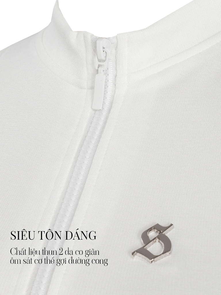 Logo inox nhỏ tinh tế ở thân áo – điểm nhấn biểu tượng của SISTERS, mang tinh thần quyến rũ và tự tin.