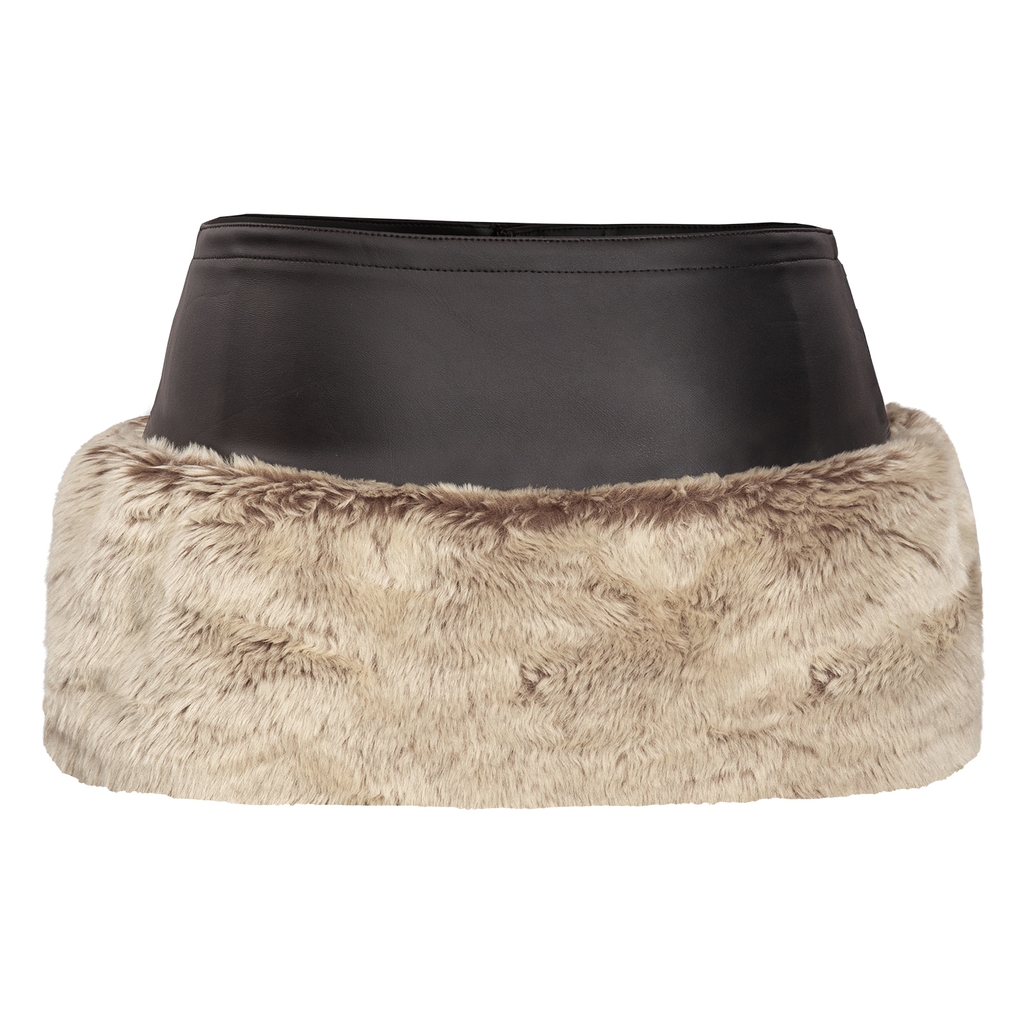 Chân váy da phối lông Vaness được sản xuất tại Việt Nam.