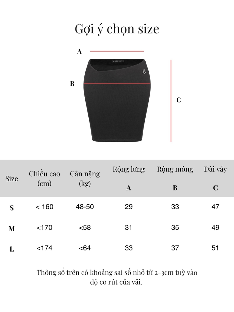 | Size | Dài váy | Rộng lưng | Rộng mông |