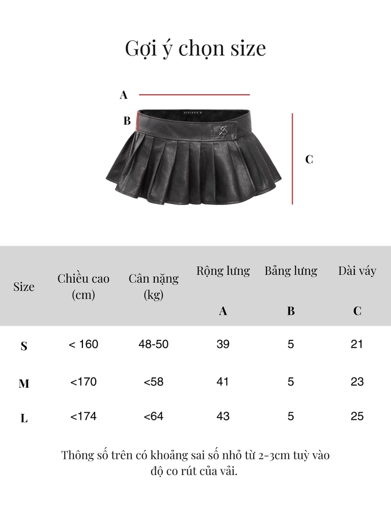 Size | Dài váy | Rộng lưng | Bảng lưng |