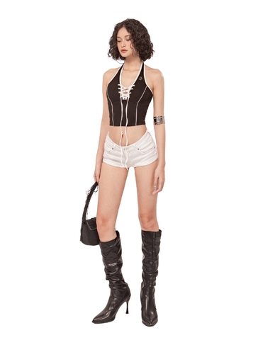 Áo ba lỗ nữ Sisters Áo croptop cổ yếm đan dây ngực Caridwen