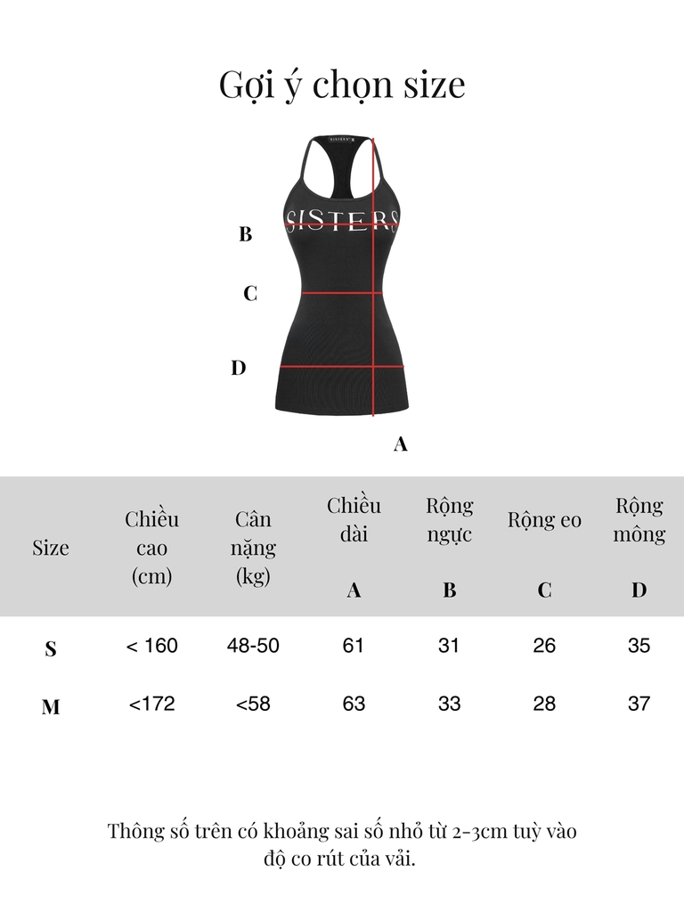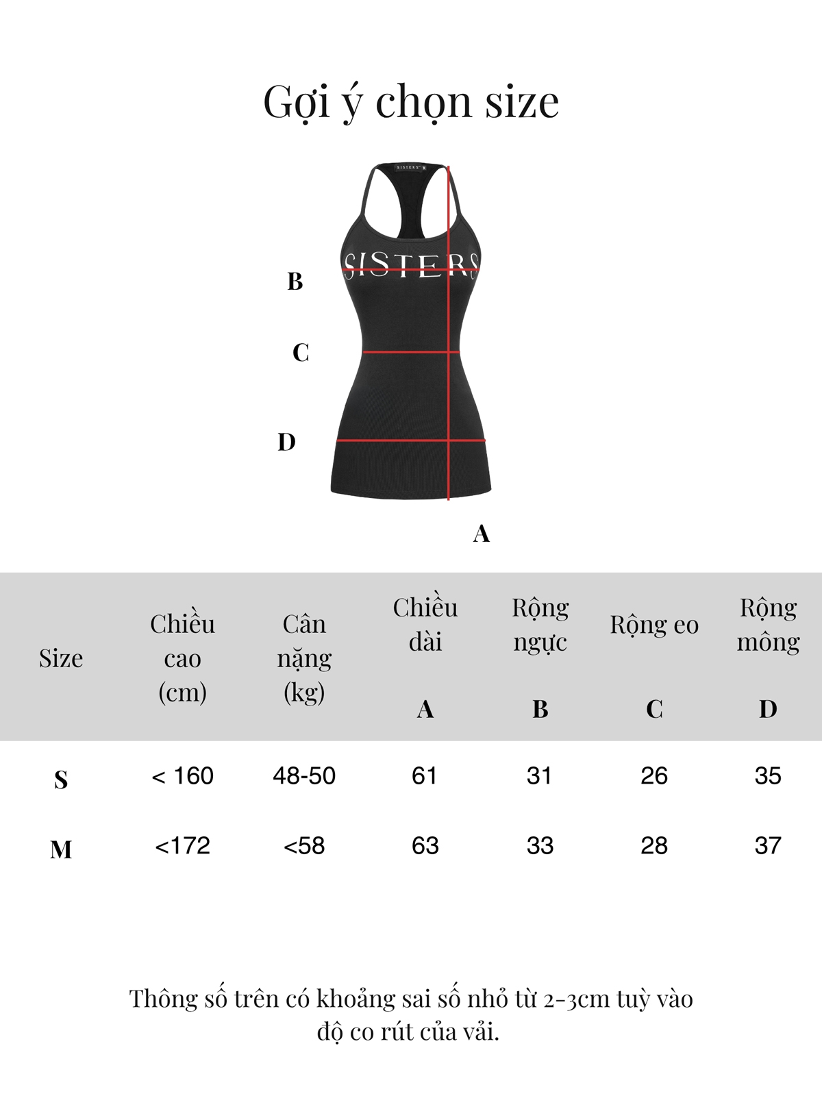 Chất vải co giãn mượt mà, ôm trọn cơ thể nhưng vẫn thoáng nhẹ, mang lại cảm giác vừa vặn và đầy nữ tính. Logo SISTERS in tinh tế nơi ngực – dấu ấn của vẻ đẹp tự tin và quyến rũ hiện đại.