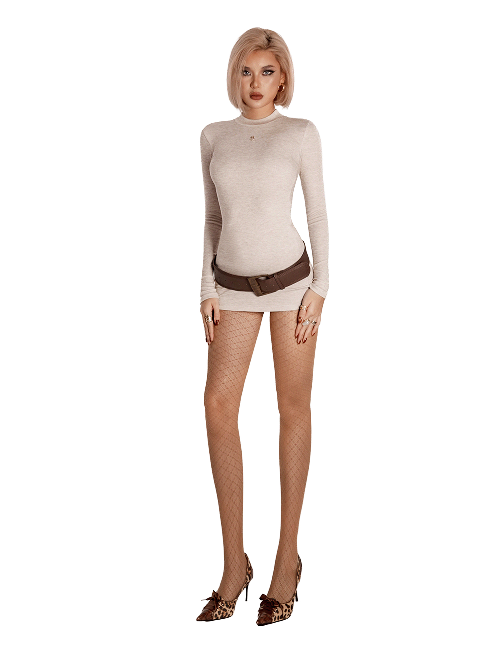 Dáng đầm body ngắn với phần tay dài và cổ cao tạo hiệu ứng thanh thoát, giúp cơ thể trông thon gọn và sang hơn ngay khi khoác lên.