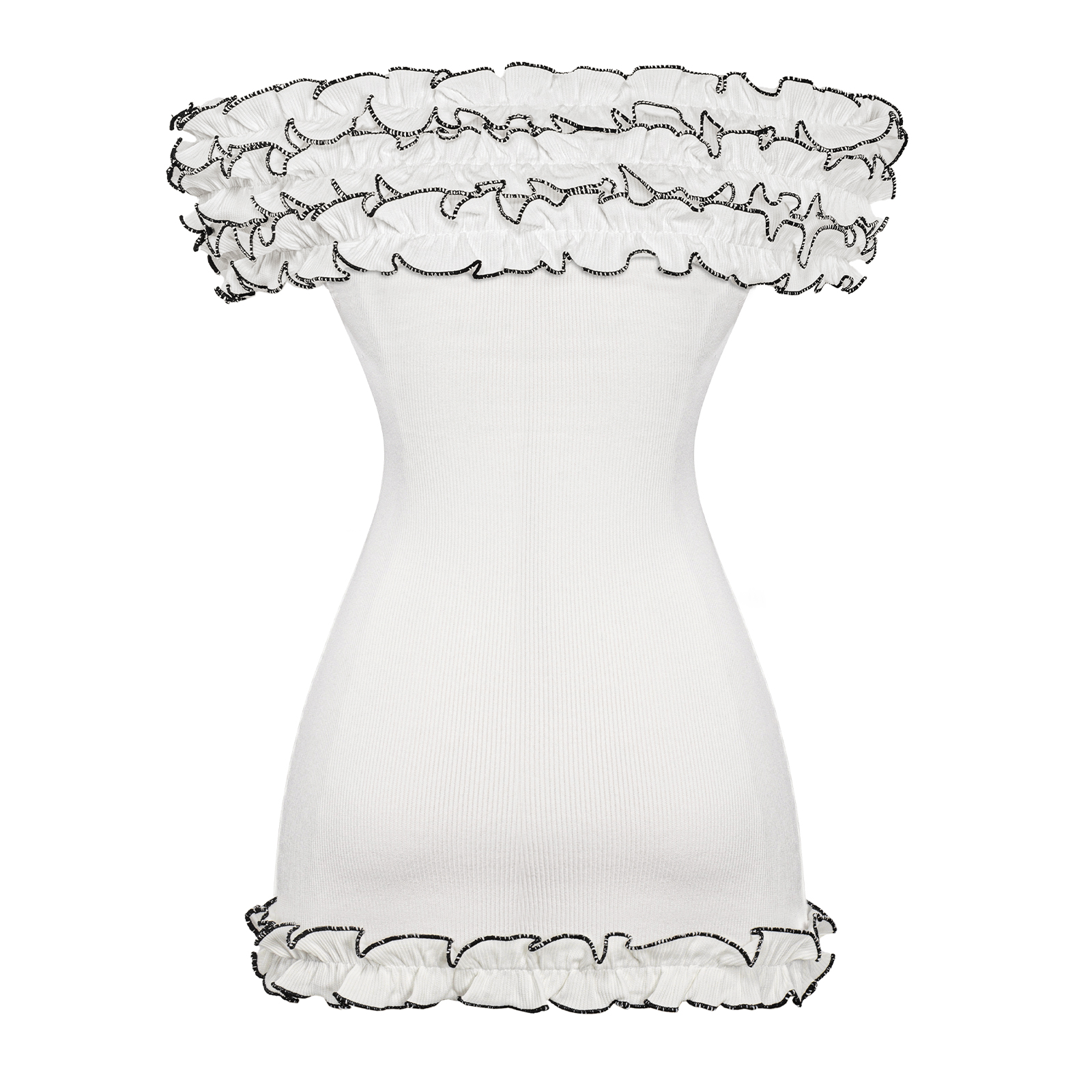 Đầm trễ vai bèo nhún ôm body Charmy Mini Dress được sản xuất tại Việt Nam, tôn vinh vẻ đẹp của người phụ nữ.
