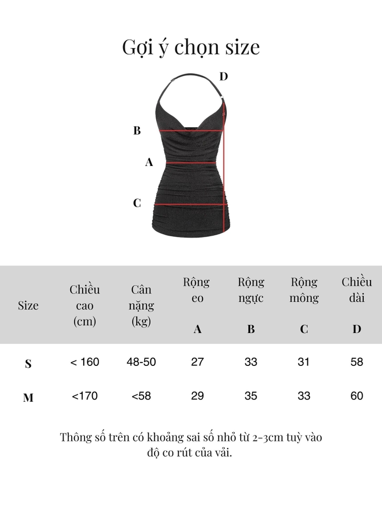 | Size | Rộng eo | Rộng ngực | Rộng mông | Chiều dài |