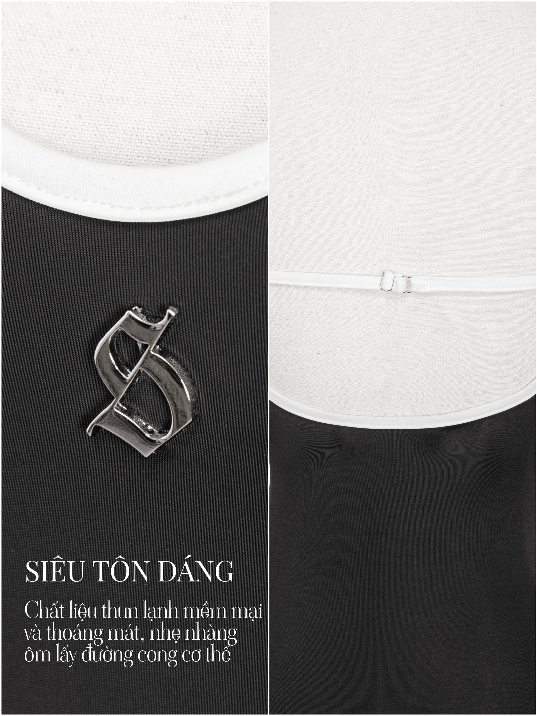 Sắc đen phối với viền trắng tuy đơn giản nhưng làm vóc dáng của nàng thêm thu hút và sắc sảo.