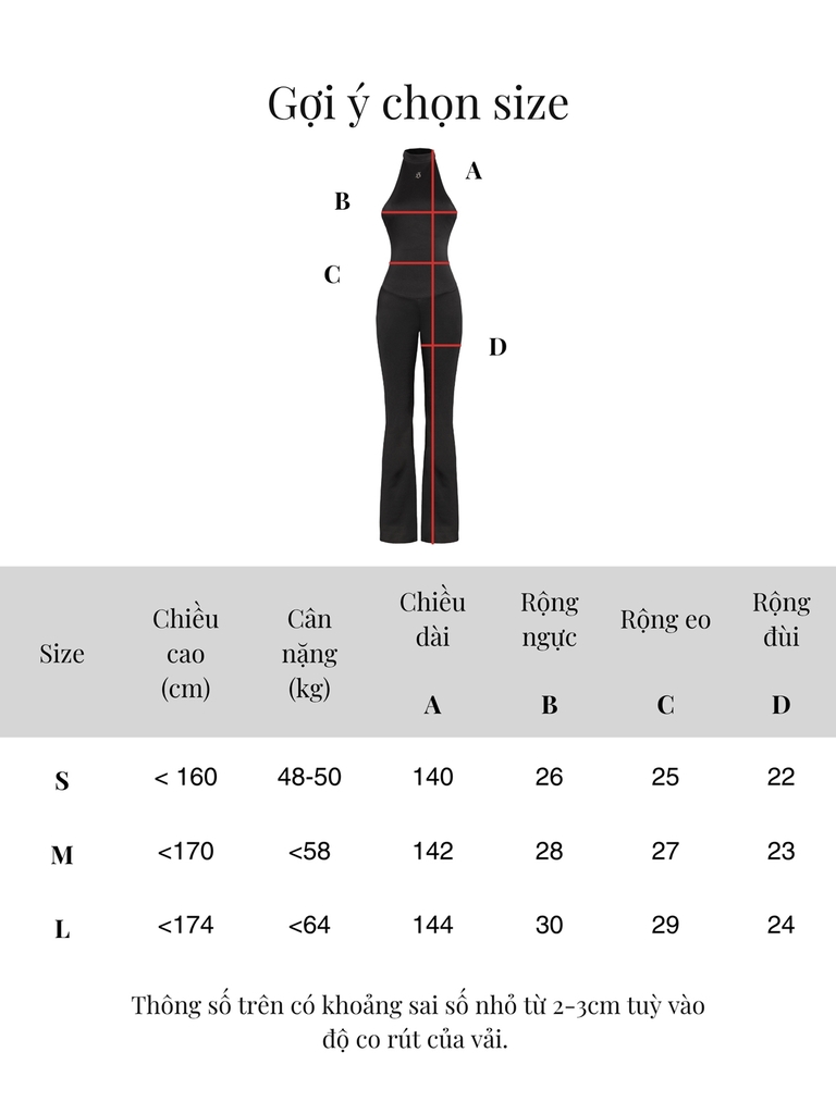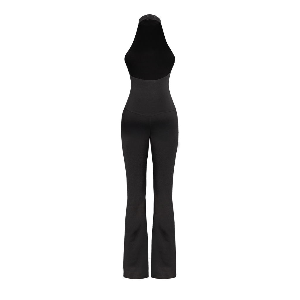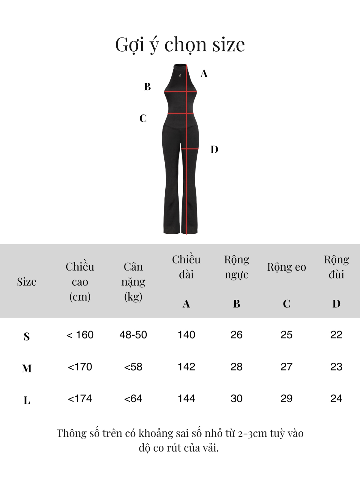 Thiết kế cổ yếm hở lưng đầy mê hoặc, khoe trọn bờ vai và tấm lưng trần gợi cảm – điểm hút ánh nhìn ngay từ giây đầu tiên. Phom ống loe dài ôm sát phần hông, thả rơi nhẹ từ đùi xuống chân, tạo hiệu ứng dáng cao và thon đầy cuốn hút.