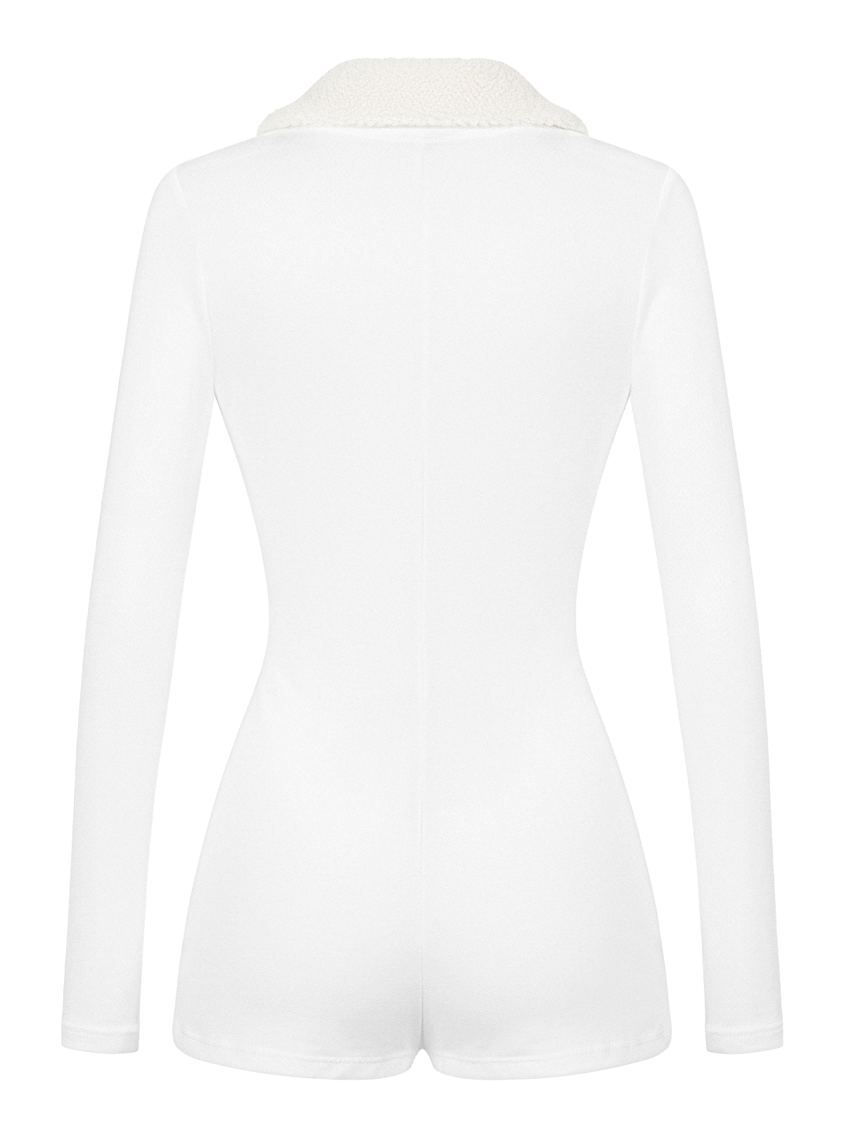 Kiểu dáng Jumpsuit đùi dài tay ôm sát body, cổ bẻ hiện đại. Độ dài đùi hoàn hảo giúp "khoe trọn đôi chân thon" và kéo dài tỷ lệ cơ thể, mang lại vẻ ngoài nữ tính tuyệt đối và gợi cảm.