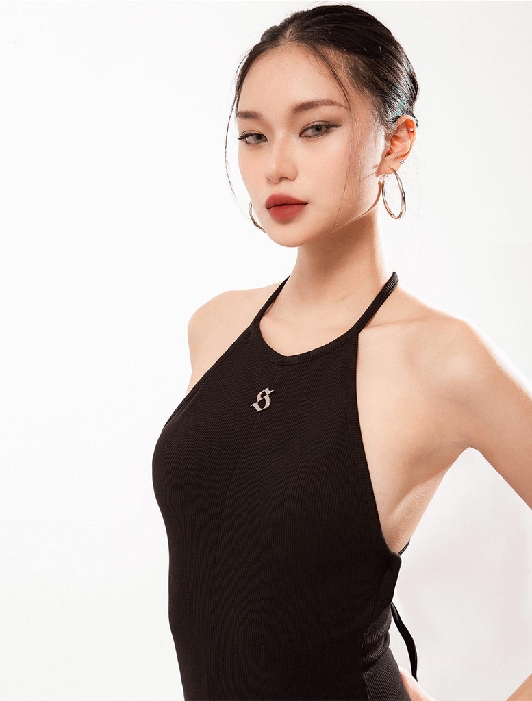 Sự kết hợp hoàn hảo giữa cổ yếm thanh lịch và hở lưng táo bạo, tạo nên điểm nhấn gợi cảm và đầy bí ẩn.
