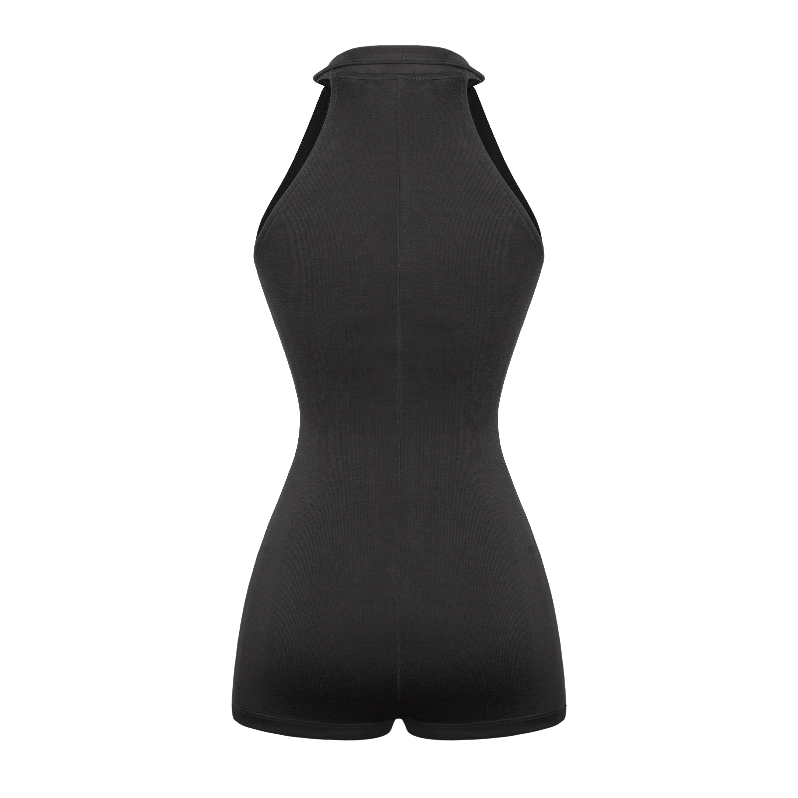 Jumpsuit có dáng cổ trụ phá cách kết hợp xẻ ngực, mang đến sự quyến rũ đầy tự tin, cùng khóa kéo hiện đại kết hợp logo inox tỉ mỉ, làm bật lên vẻ sang trọng và cao cấp.