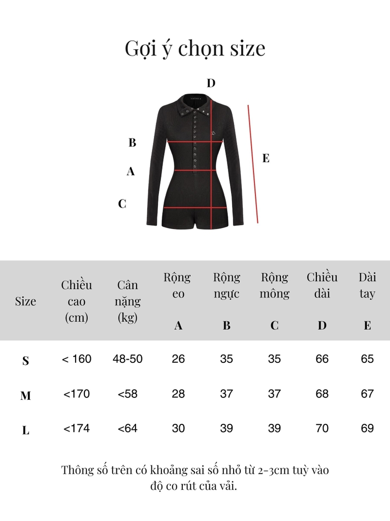 | Size | Rộng eo | Rộng ngực | Rộng mông | Dài tay | Chiều dài |