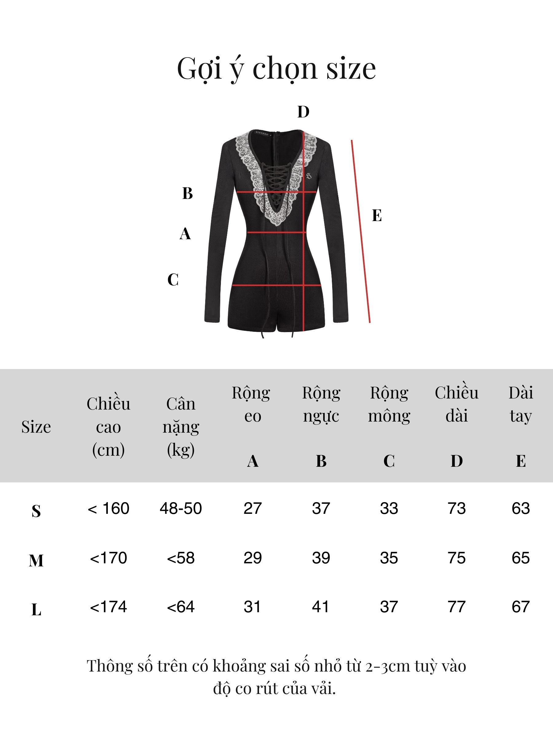 Size | Rộng eo | Rộng ngực | Rộng mông | Dài tay | Chiều dài |