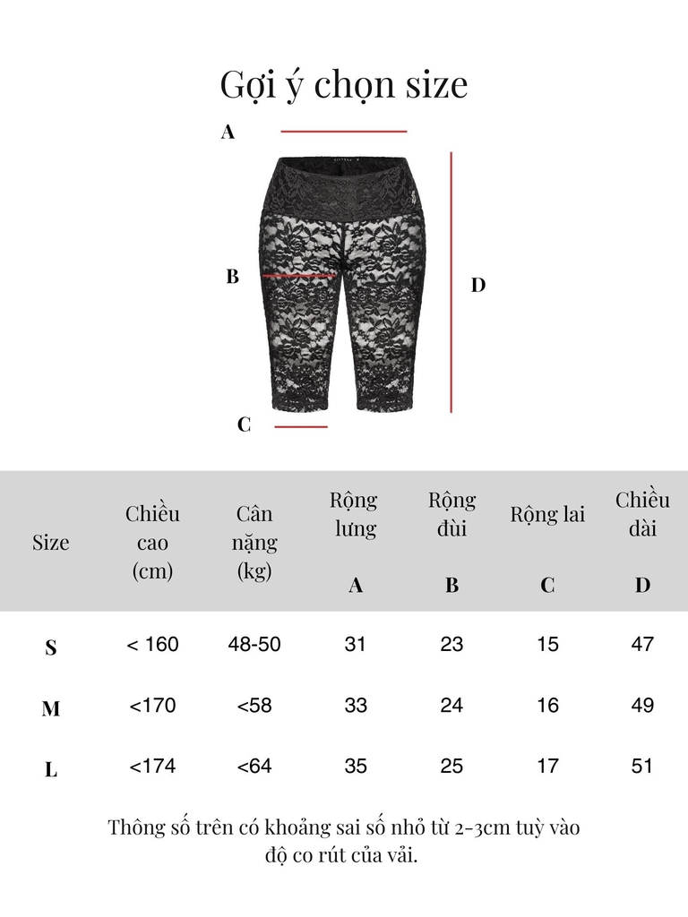 Size | Chiều dài quần | Rộng lưng | Rộng đùi | Rộng lai |