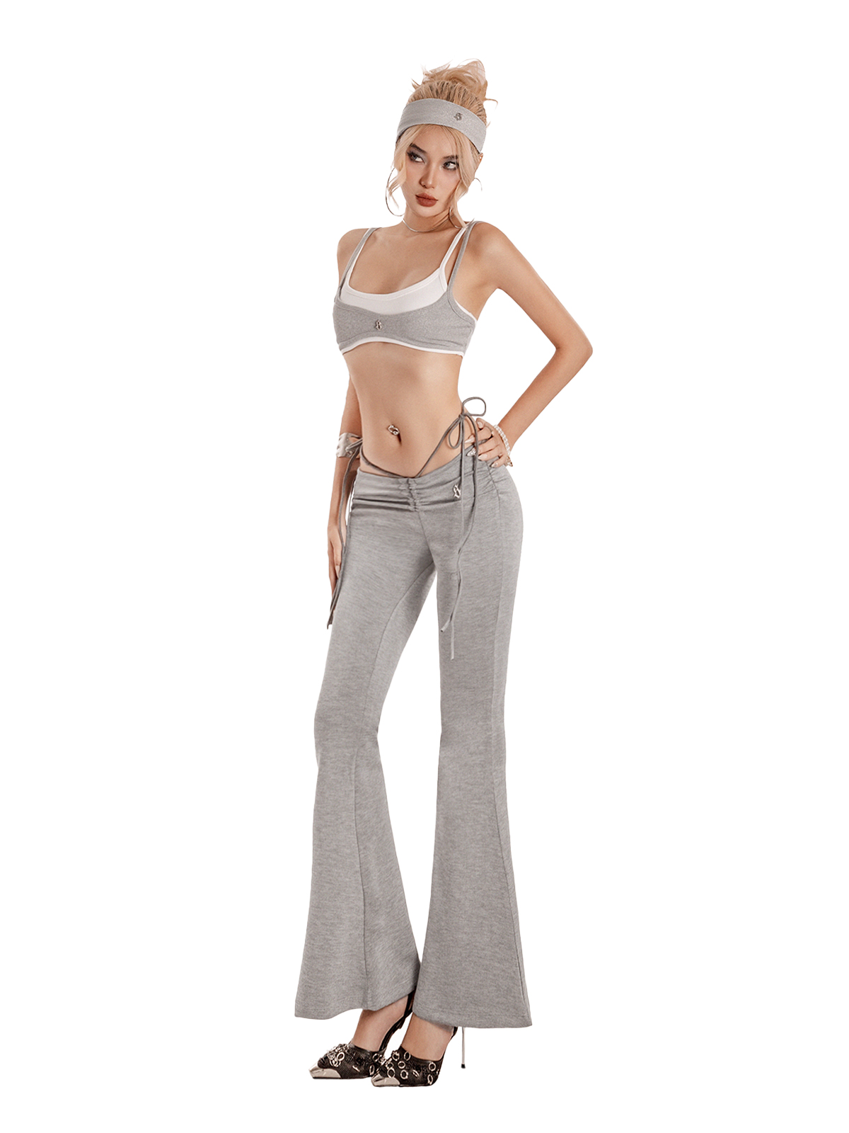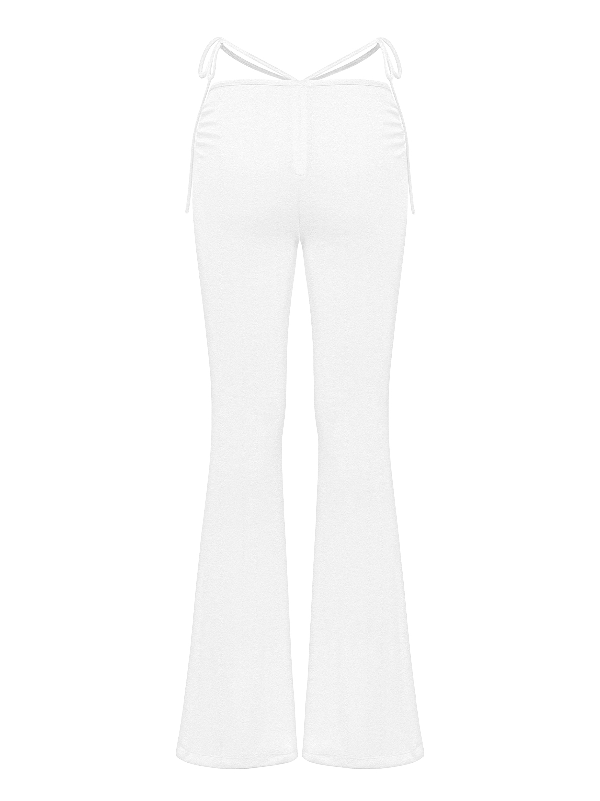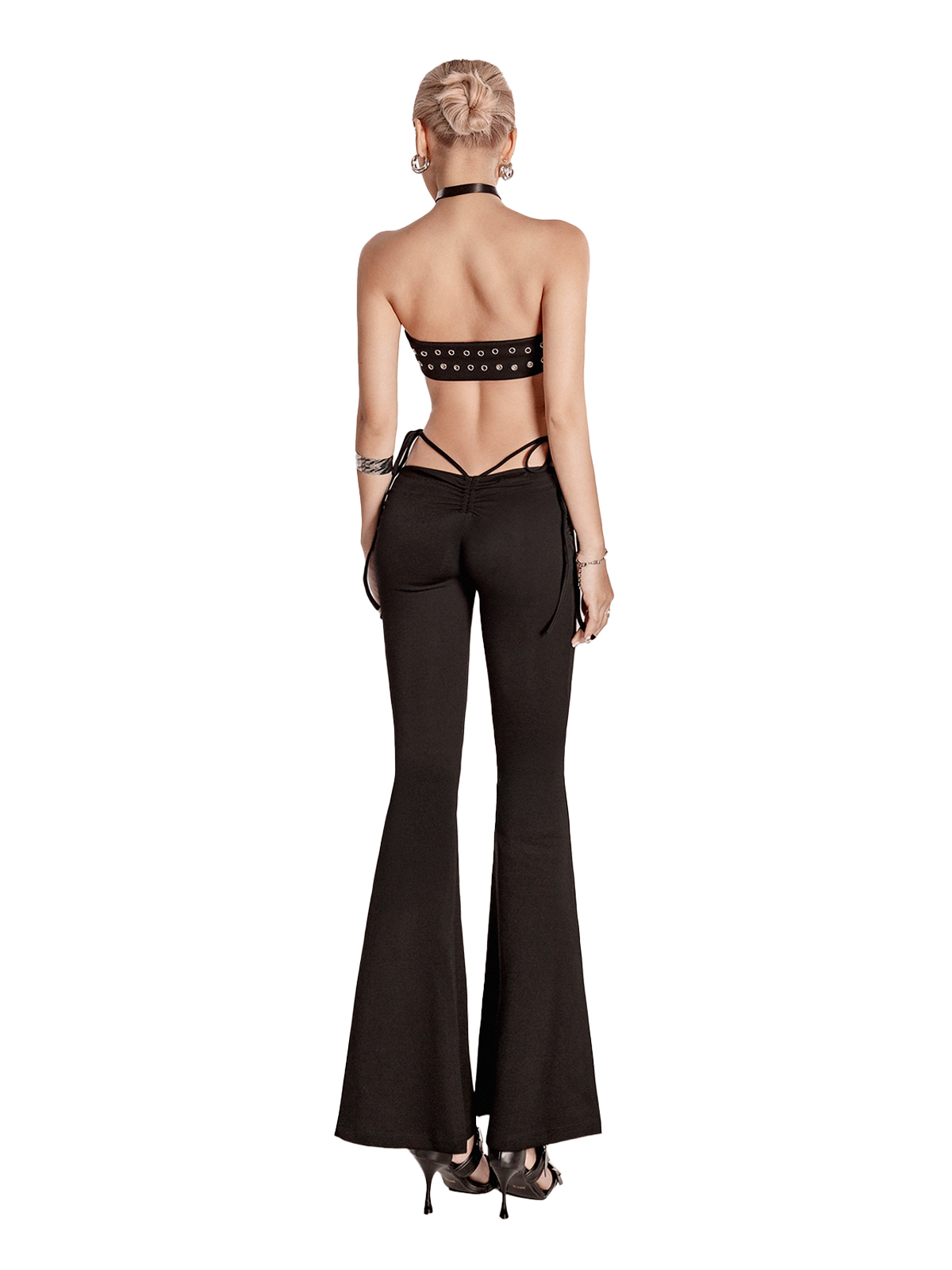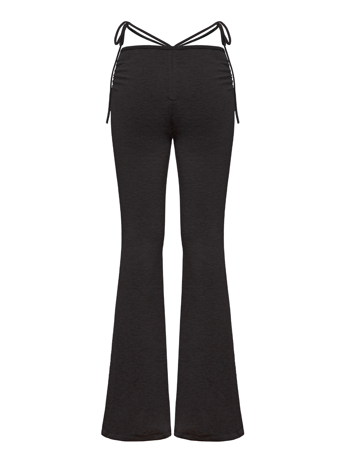 Quần ống loe có thiết kế lưng nhún co giãn và dây thắt eo linh hoạt, giúp tôn vòng eo nhỏ gọn và chi tiết ống loe to sẽ tạo hiệu ứng đôi chân dài miên man.