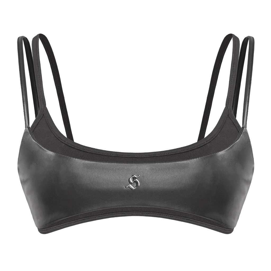 Thiết kế đính logo inox tinh xảo ở ngực, viền áo sắc nét, phần dây mảnh tạo điểm nhấn quyến rũ – hiện thân cho sự sang trọng và táo bạo của SISTERS.