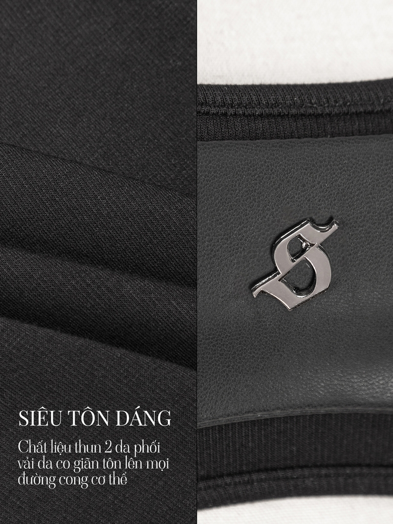 Áo trong làm từ thun 2 da mềm mịn, co giãn linh hoạt, áo ngoài phủ chất da co giãn cao cấp mang hiệu ứng thời thượng.