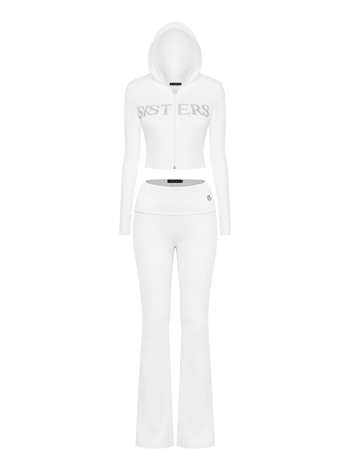 Điểm nhấn lấp lánh từ chữ SISTERS đính đá, logo kim loại nhỏ tinh xảo được đính ở cạp quần là dấu hiệu nhận biết các thiết kế của SISTERS. Kết hợp với khóa kéo zip tiện lợi, set đồ không chỉ đẹp mà còn tối ưu hóa tính ứng dụng trong mọi hoàn cảnh.